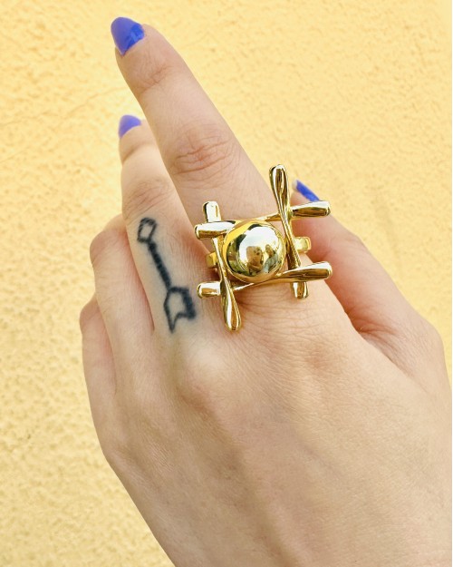 ANEL GRANDE DE AÇO INOXIDÁVEL DOURADO BRILHANTETAMANHO ÚNICO..